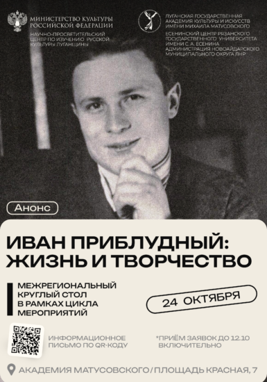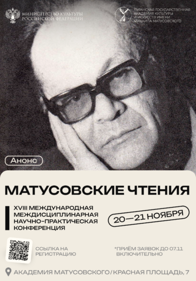Уважаемые коллеги и студенты! ИНФОРМАЦИОННОЕ ПИСЬМО 24 октября 2025 г. Круглый стол проводится в рамках реализуемого Академией Матусовского проекта «Культурно-нравственное наследие наших земляков: возрождение имён знаменитых луганчан»; к участию в его работе приглашаются специалисты-филологи, культурологи, социологи, философы, преподаватели высшей, средне-профессиональной и средней общеобразовательной школ, научные сотрудники музеев, аспиранты и соискатели вузов, а также все заинтересованные […]